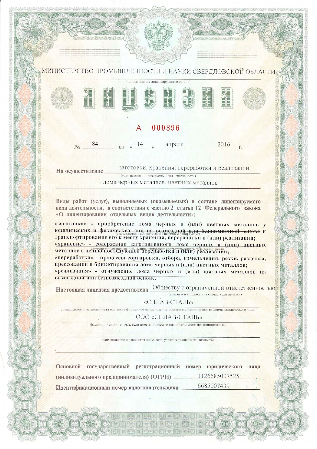 У нас можно официально продать металлолом: сдать отходы металла, нержавейку, цветной и чёрный лом на переработку для утилизации и получить уведомление для природоохранной организации (Министерство Природных Ресурсов и Экологии). Мы сотрудничаем с природоохраной и также перед ними отчитываемся.